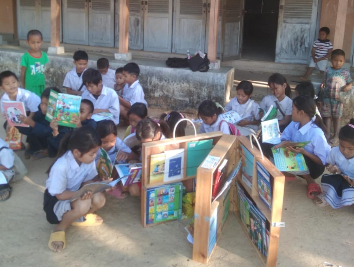 公益財団法人民際センター様を通じて、読み書き・計算の指導本や子供向けの短編小説等の図書を弊財団が建設した