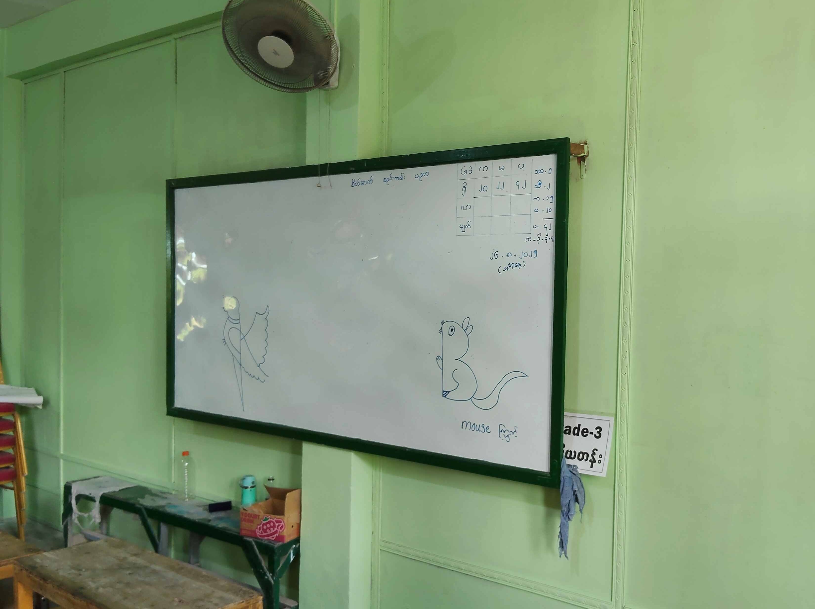 現地協力者を通じて学用品(ホワイトボード、教室の机・いす、ノート)を寄付しました。